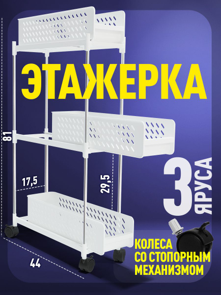 Этажерка на колесиках Nesh, 3 яруса, этажерка для ванной, для кухни