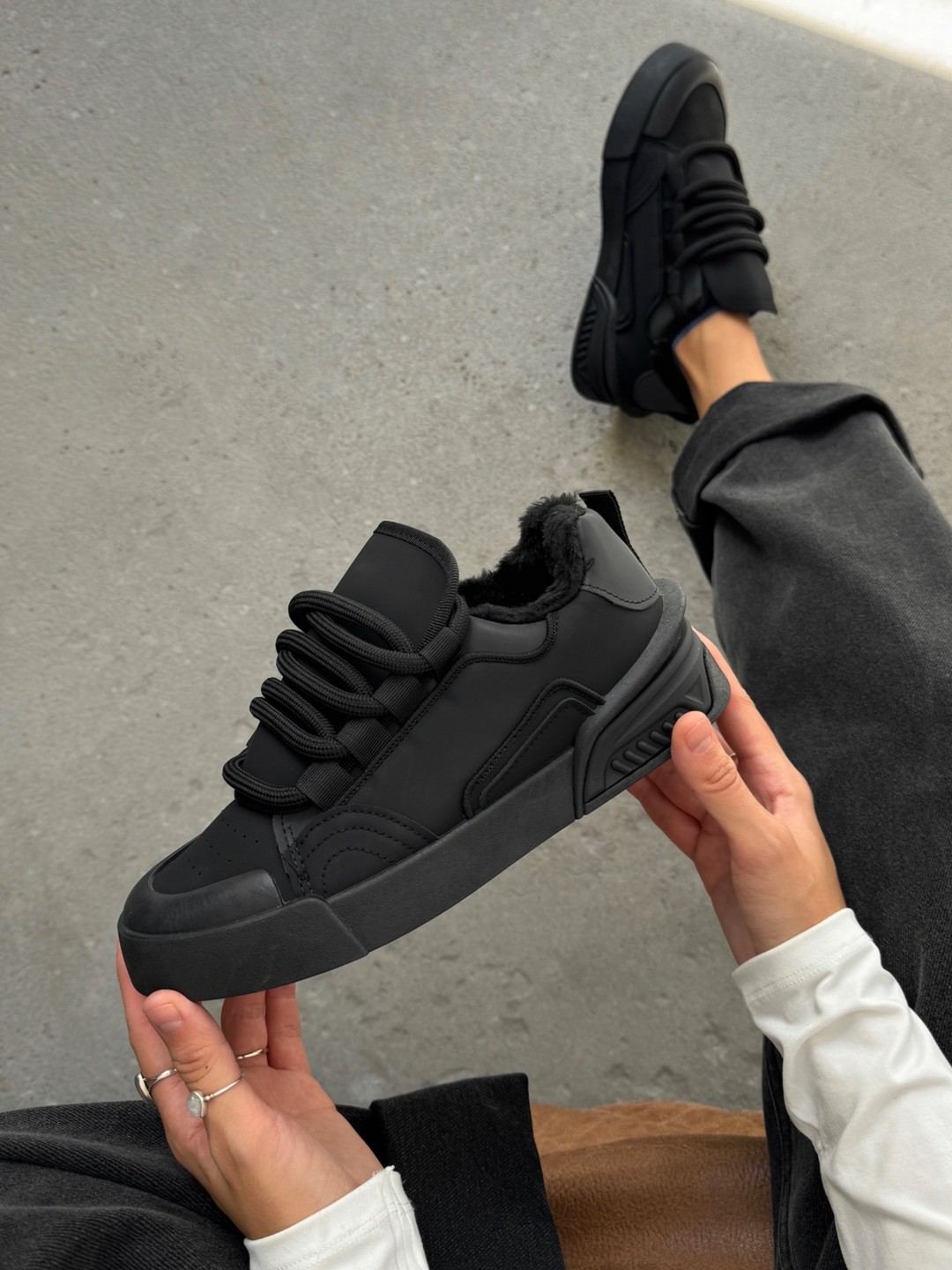 Кеди на шнурівці утеплені чорні