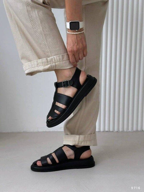 Кожаные женские босоножки (сандали) Sali 40р(25.5см) черные кожаные