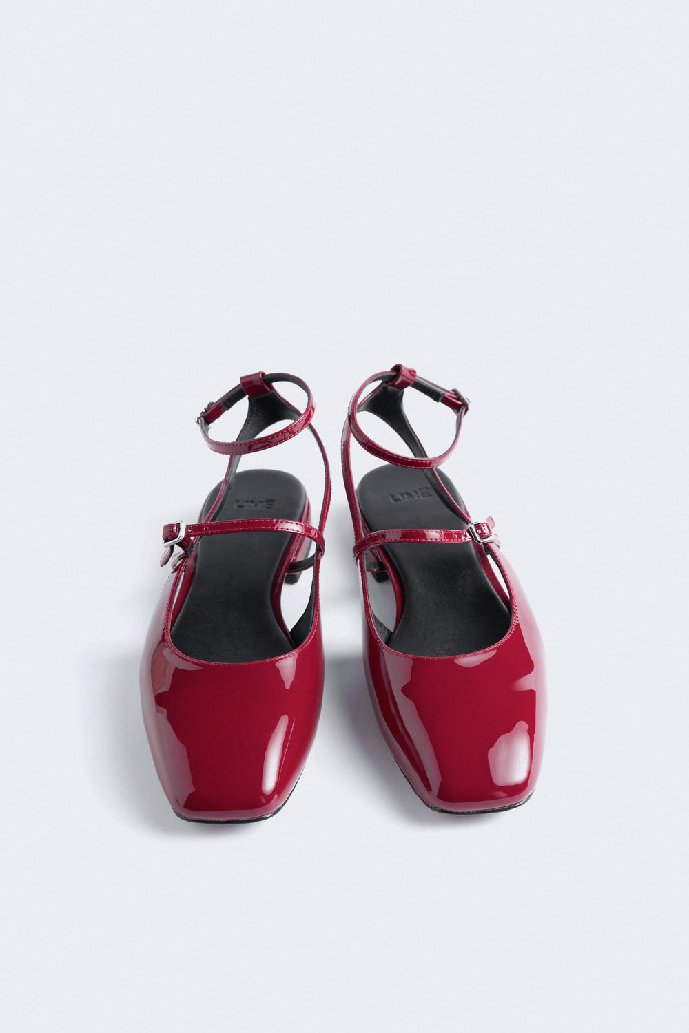 Черные Лаковые туфельки с ремешком / Туфли без каблука / Обувь Женская
