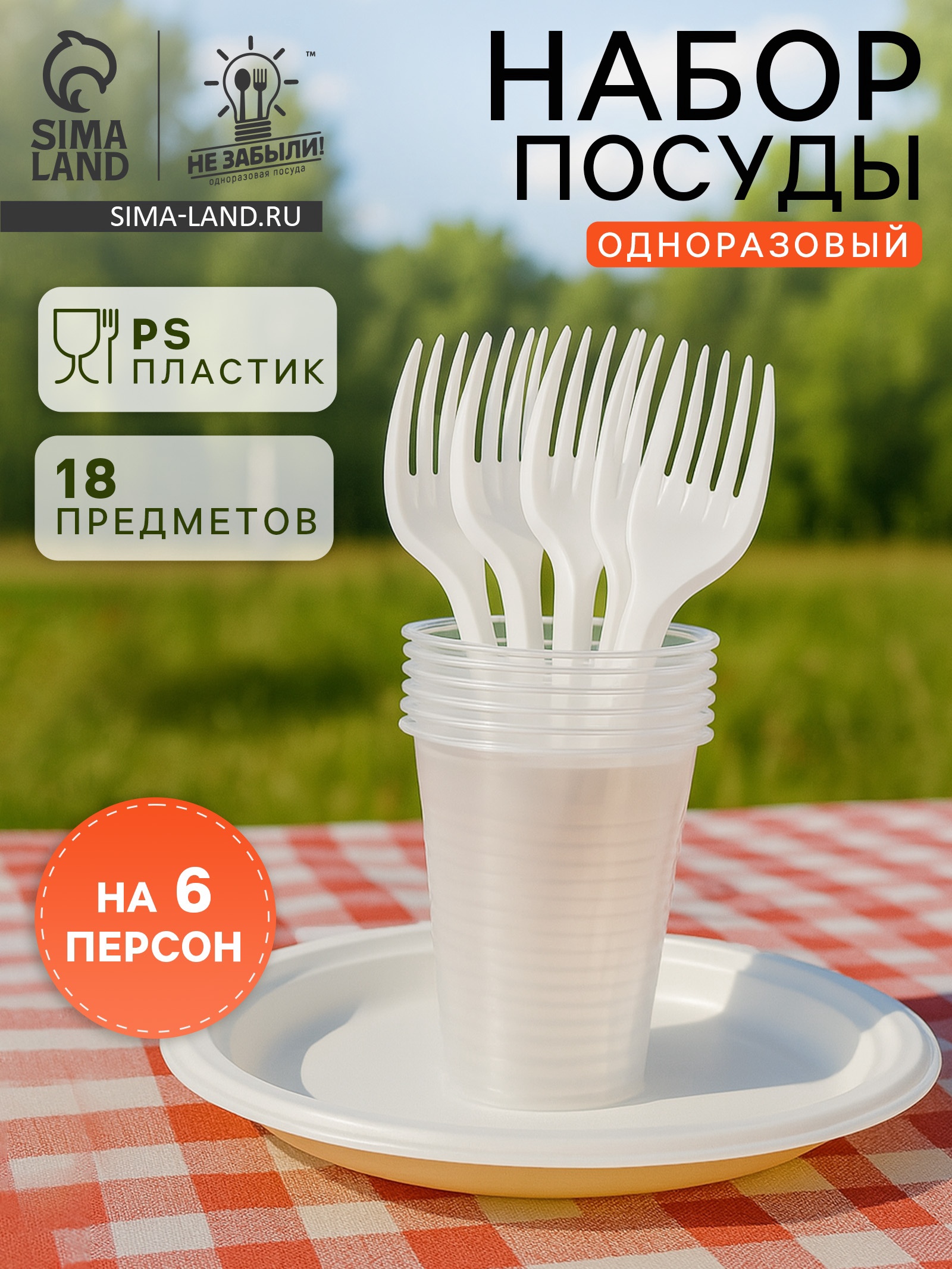 Набор пластиковой одноразовой посуды на 6 персон Не ЗАБЫЛИ! «Пикник