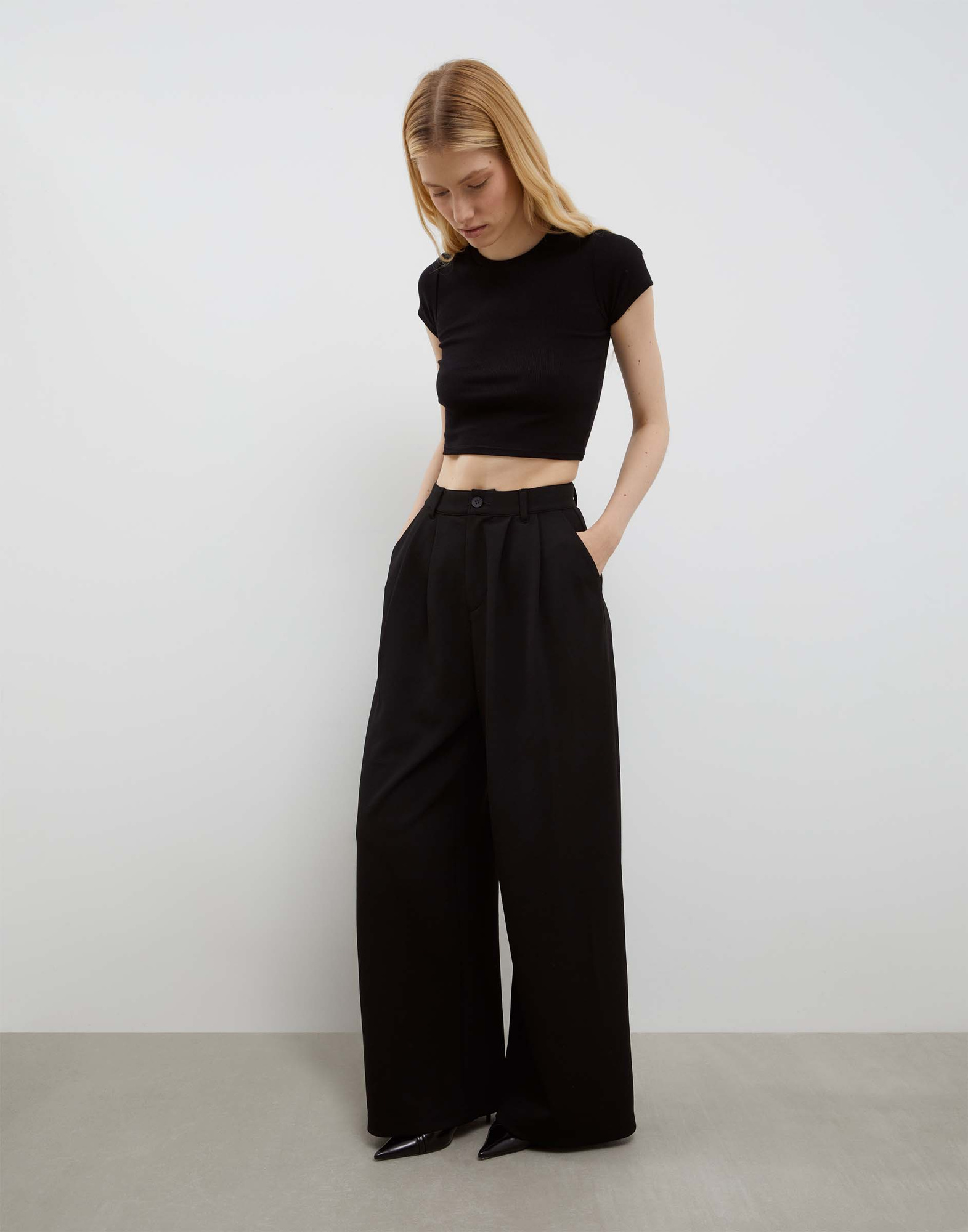 Чёрные брюки Wide leg с защипами GPT010306-1 купить по цене от 799