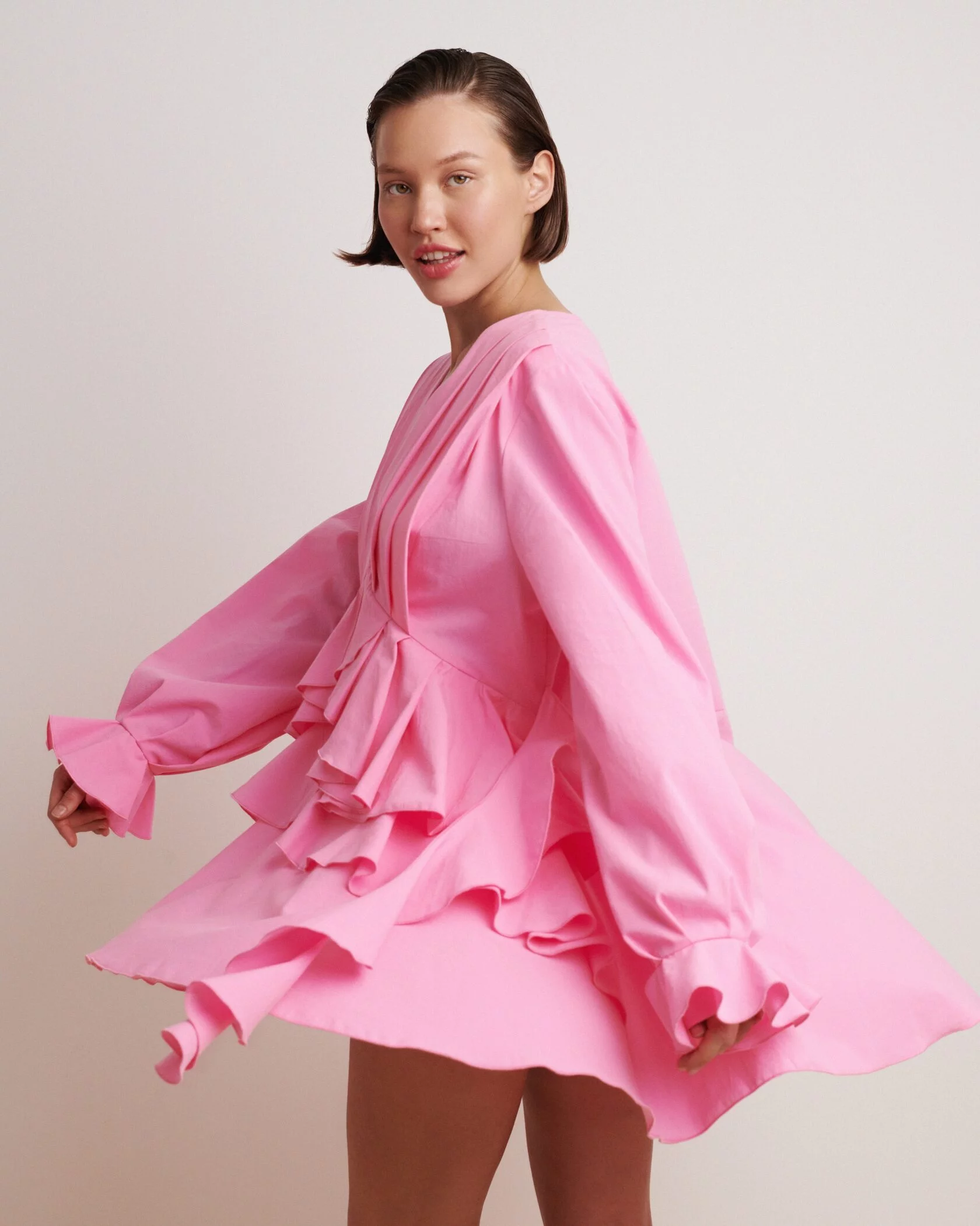 Платье мини с воланами Anmuse, цвет: розовый, RB24W82-RS со скидкой