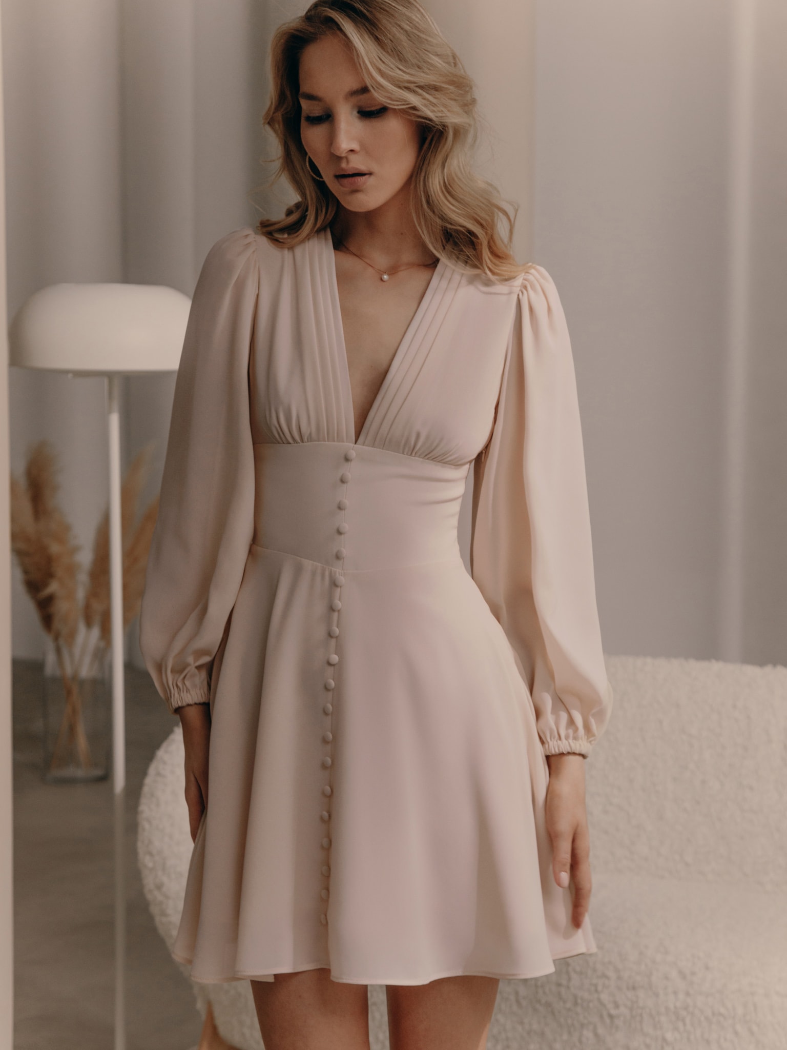 Легкое платье мини с обтяжными пуговицами в тон :: LICHI