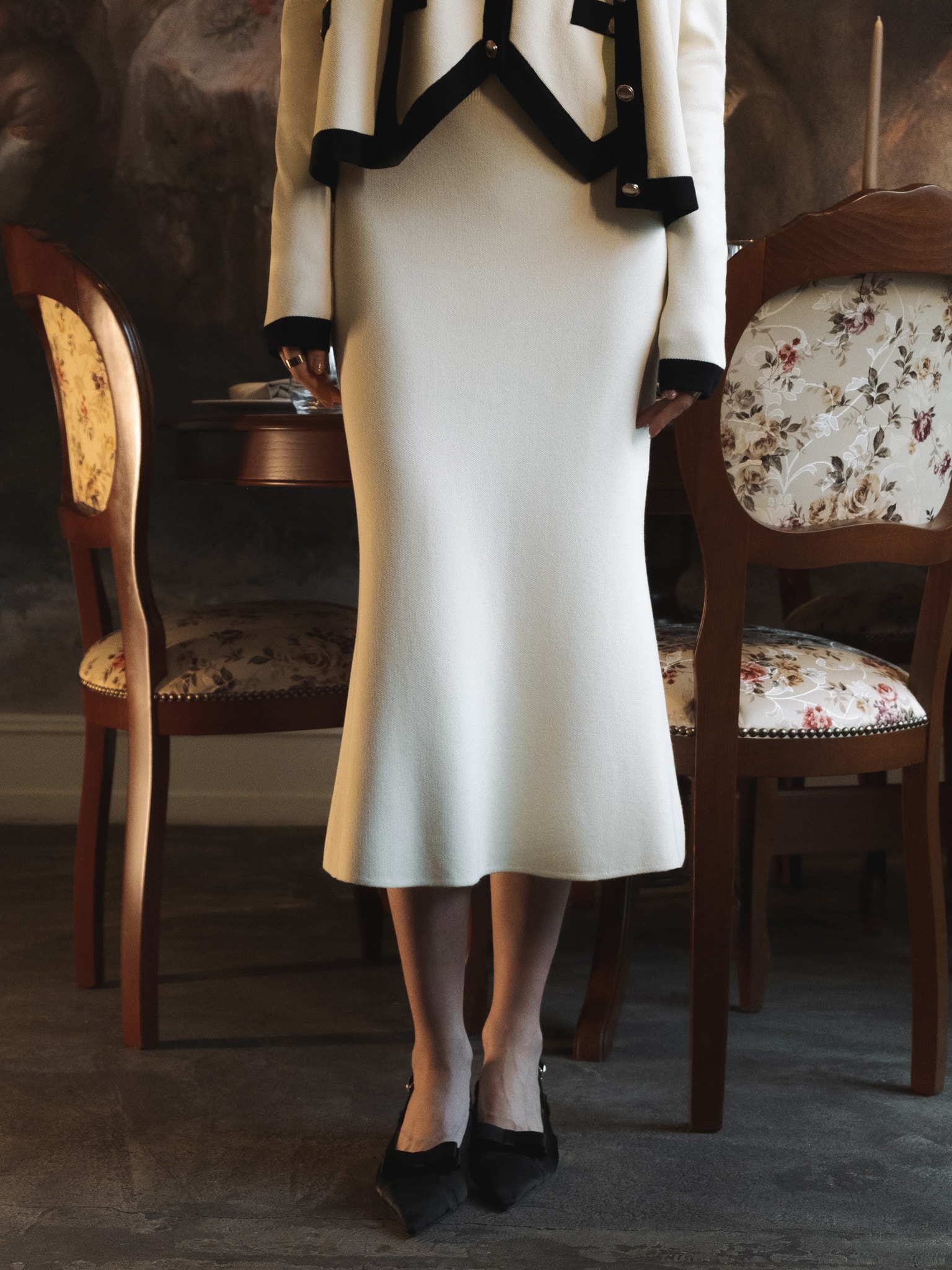 Прямая юбка миди из вязаного трикотажа :: LICHI