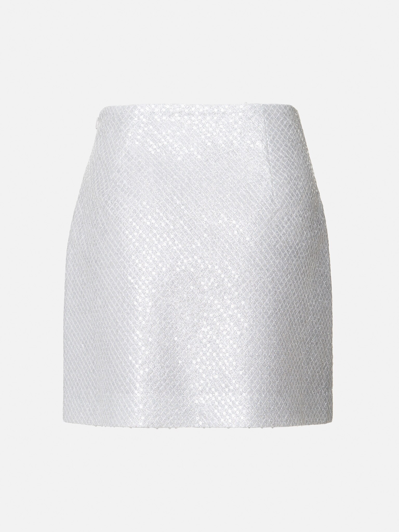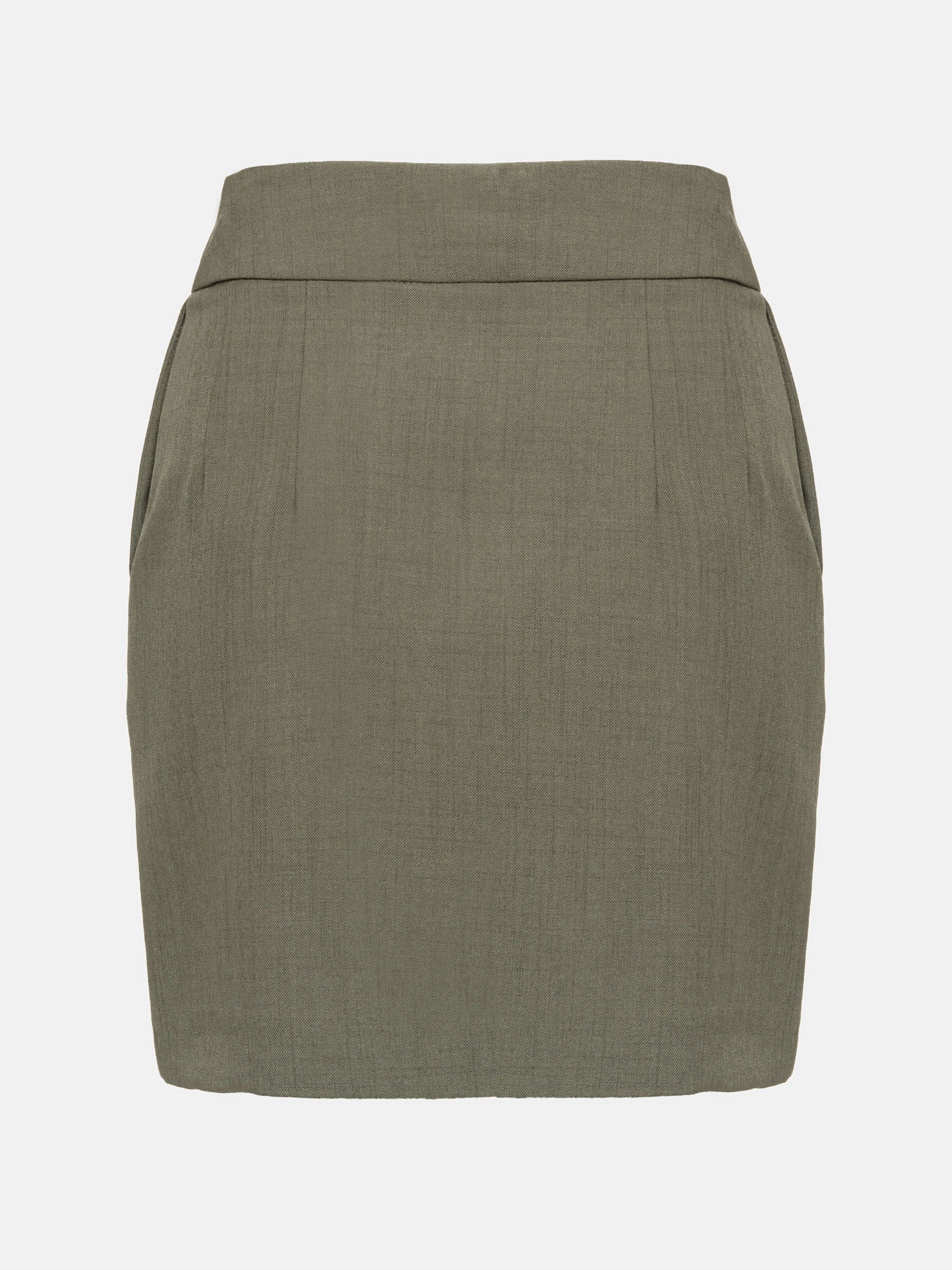 Прямая юбка длины мини с завышенной линией талии и высоким разрезом