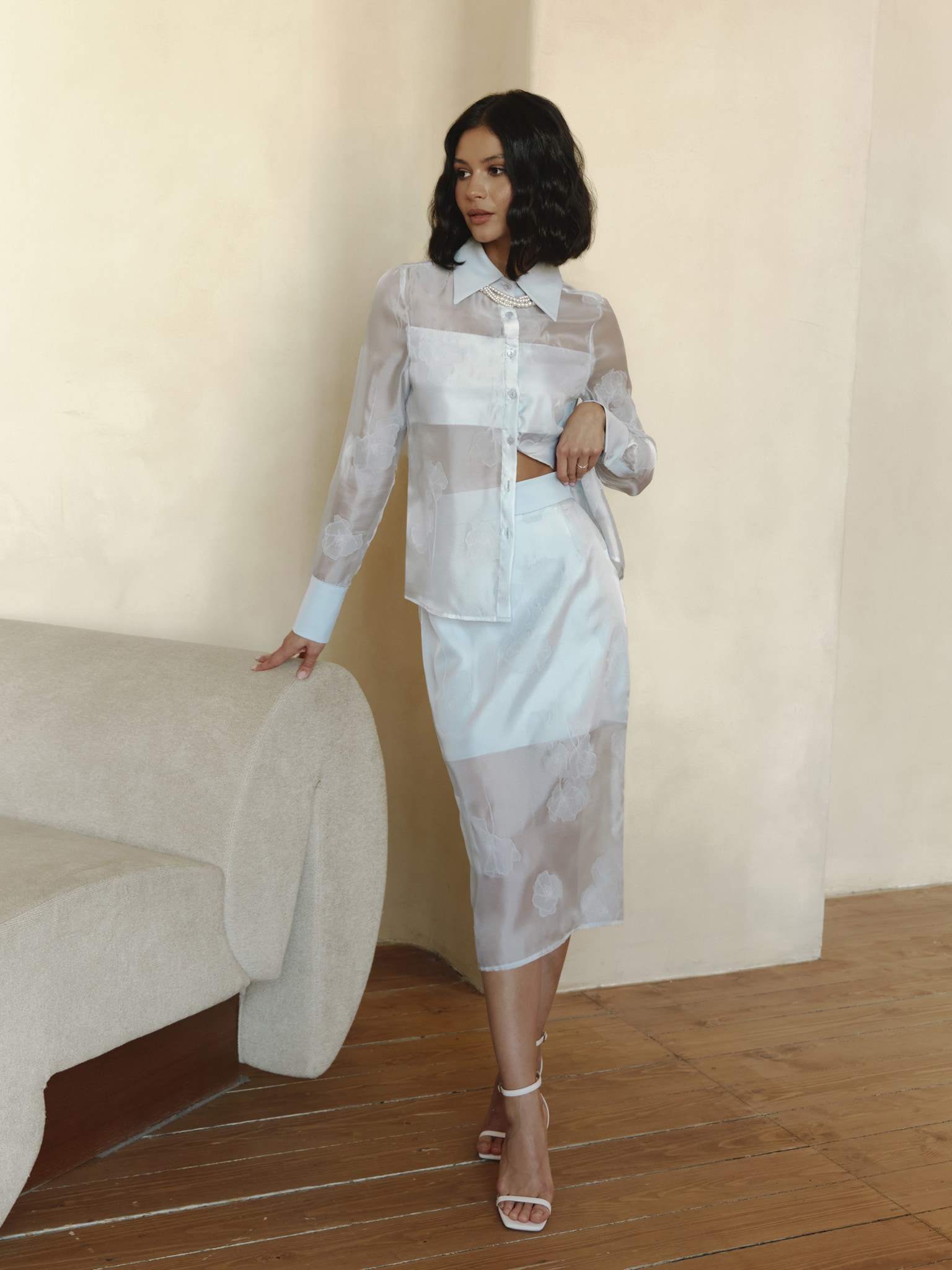 Полупрозрачная юбка миди с цветочным орнаментом :: LICHI